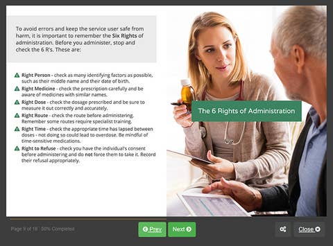 This online training course will provide you with the essential procedures and techniques you need to know, as well as the key legislation relevant to medication. It also outlines your responsibility in relation to your role along with different types of medication and their uses.
