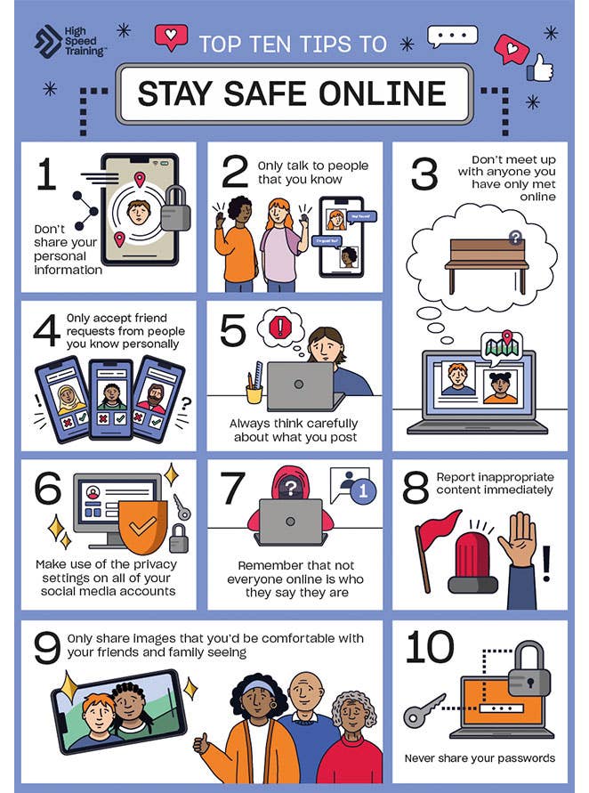 We’ve created a poster showing our top 10 tips for staying safe online. You could put this on the wall of your classroom or in a corridor where everyone can see it – it’s a good reminder for children to be cautious in their online behaviour, reinforcing your teaching around online safety within the curriculum. You can download the poster below.